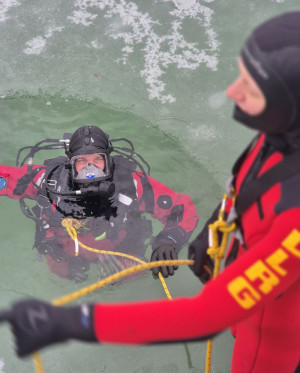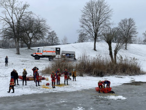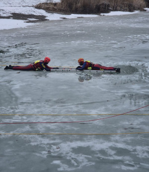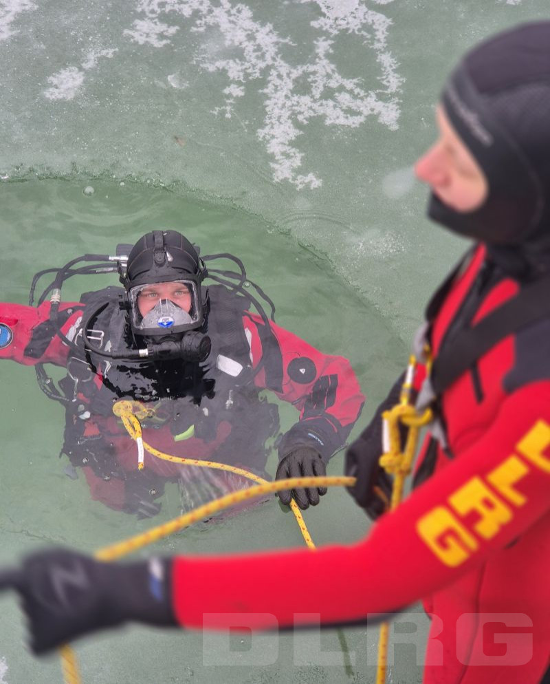 Die Fortbildung bereitete aktive Einsatzkräfte praxisnah auf die besonderen Gefahren und Anforderungen von Eisrettungseinsätzen vor und fand am zugefrorenen Schlosssee in Salem statt. Behandelt wurden unter anderem Gefahrenanalyse, medizinische Aspekte wie Hypothermie sowie Rettungstechniken, Eigensicherung und taktisches Vorgehen auf Eis. Auch Einsatztaucher waren eingebunden und trainierten die Personensuche unter dem Eis.