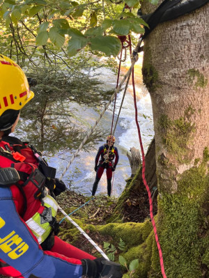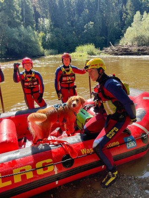 • sowie den Umgang mit Tieren in der Strömungsrettung, z. B. bei der Rettung von Haustieren oder Nutztieren aus Fließgewässern, wobei auf Sicherheit, Stressvermeidung und geeignete Transporttechniken geachtet wurde.